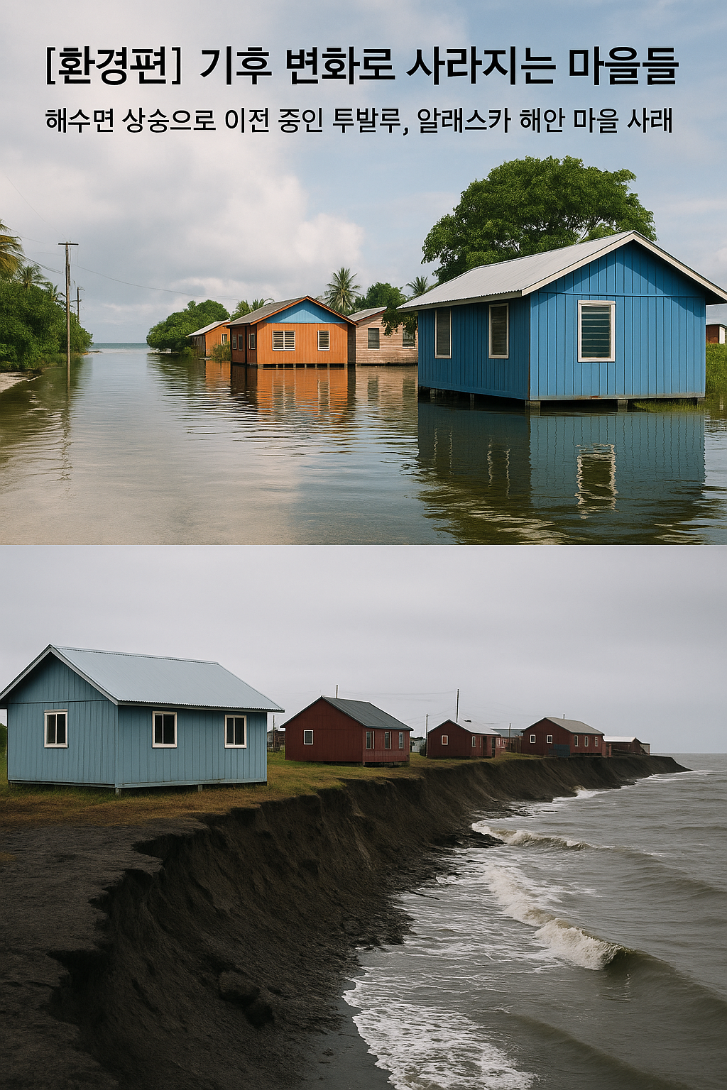 기후 변화는 더 이상 먼 미래의 이야기가 아닙니다. 지구 곳곳에서 이미 눈에 보이는 피해가 나타나고 있으며, 그중에서도 가장 심각한 문제는 **‘마을이 사라진다’**는 사실입니다.